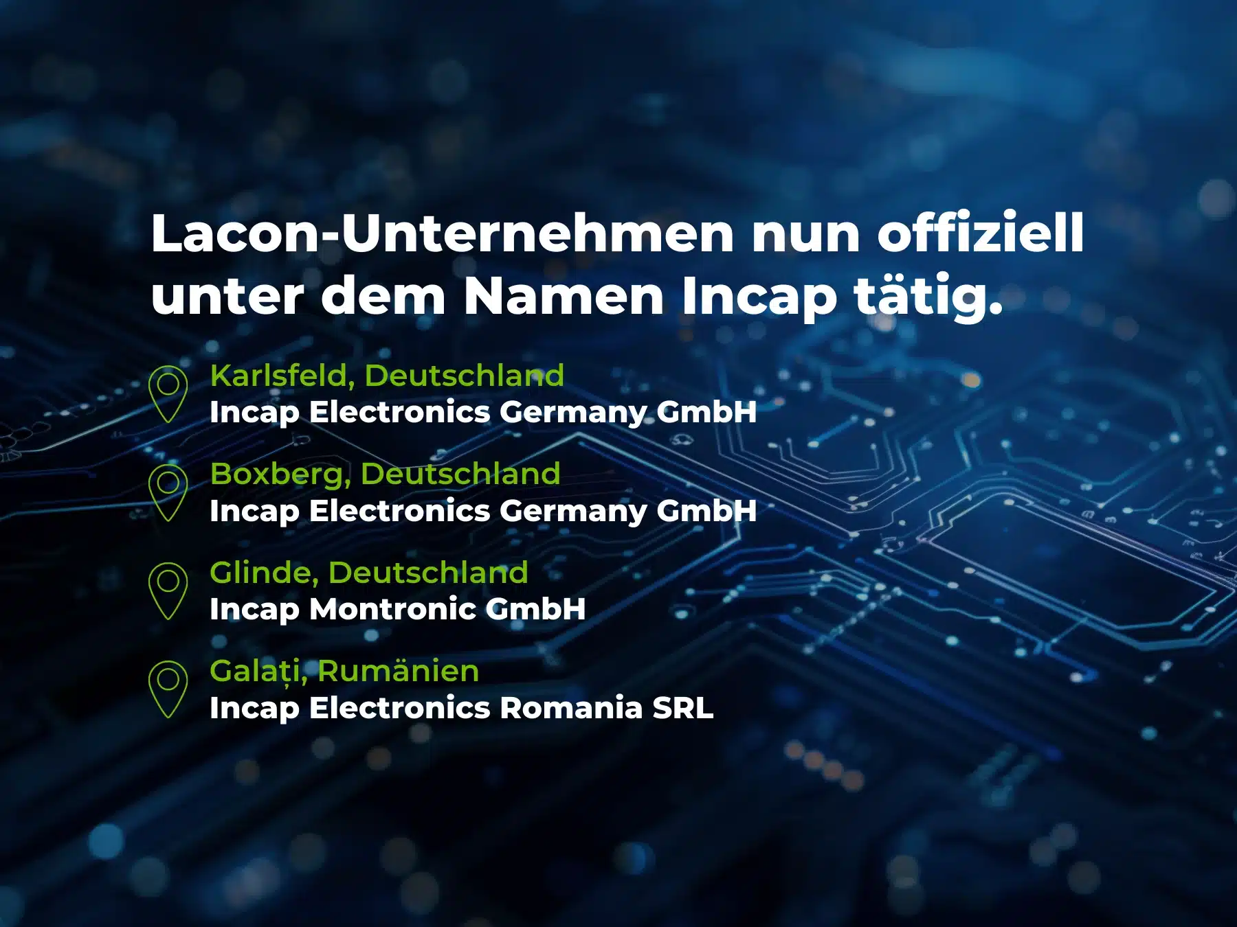 Nach der Übernahme der Lacon Group durch die Incap Corporation im Februar 2026 haben die ehemaligen Lacon-Unternehmen in Deutschland und Rumänien nun offiziell den Namen Incap angenommen.
