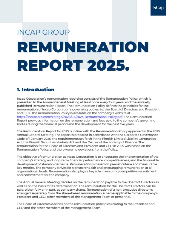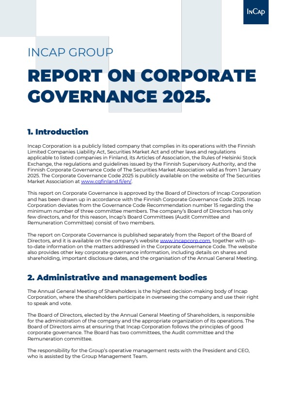 Incap has also published Report on Corporate Governance 2025 and Remuneration Report 2025 as separate reports.